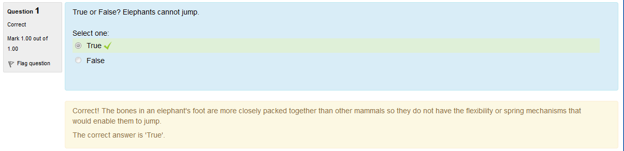Some quizzes in the program are set to allow students to review their selected answers or view correct/incorrect marks after the quiz has closed.