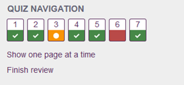 The Quiz Navigation in the top left corner provides each question number with a color code to indicate your results:
